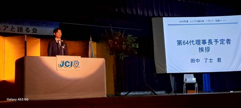 次年度の理事長候補者のお披露目と決意表明をはじめ、今年入会した新入会員によるアトラクションを交えながら、シニア会員と現役会員の交流を深める場となりました。