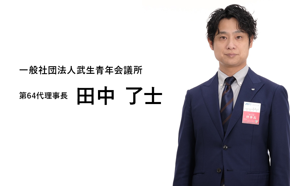 私たち青年会議所の会員はこの世に存在してまだ数十年ではありますが、今この日本が、このまちが豊かで便利で不自由なく暮らしていくことができるのは、これまで先代たちがより良い社会を望み、行動してきた結果です。自分のためではなく、人のため、まちのため、社会のためにという想いで繋いできたからこそ、今の社会があるのだと思います。一度しかない人生、自分の生まれてきた意味や役割を考えたとき、やはり最後に行き着く想いは、自分の周りの人が「幸せ」になることでした。青年会議所の活動の基本である「修練」「奉仕」「友情」はまさに幸せを追求し、地域社会に貢献していくために必要な考え方であり、私は青年会議所に所属し、学ばせていただけていることに感謝しておりますし、誇りに思っております。 人は時に自分本位な考え方や目先の幸せを判断基準にしてしまうこともあると思いますが、私たち青年会議所は、地域のリーダーとして奉仕の精神を育み、より明るい豊かな社会を築くために、常に前向きに明るく「在りたい形」「理想の形」を明確に掲げ、絶対にやり遂げるという強い想いをもって行動し、共に成長していきましょう。
